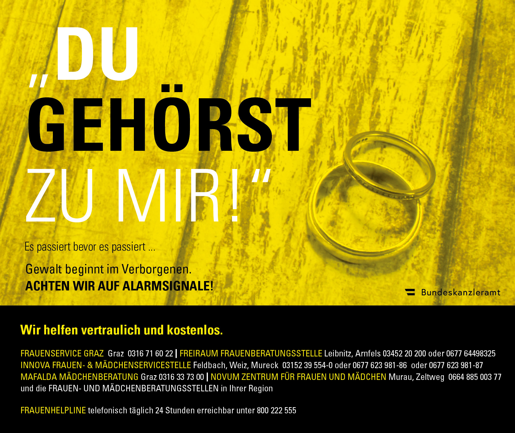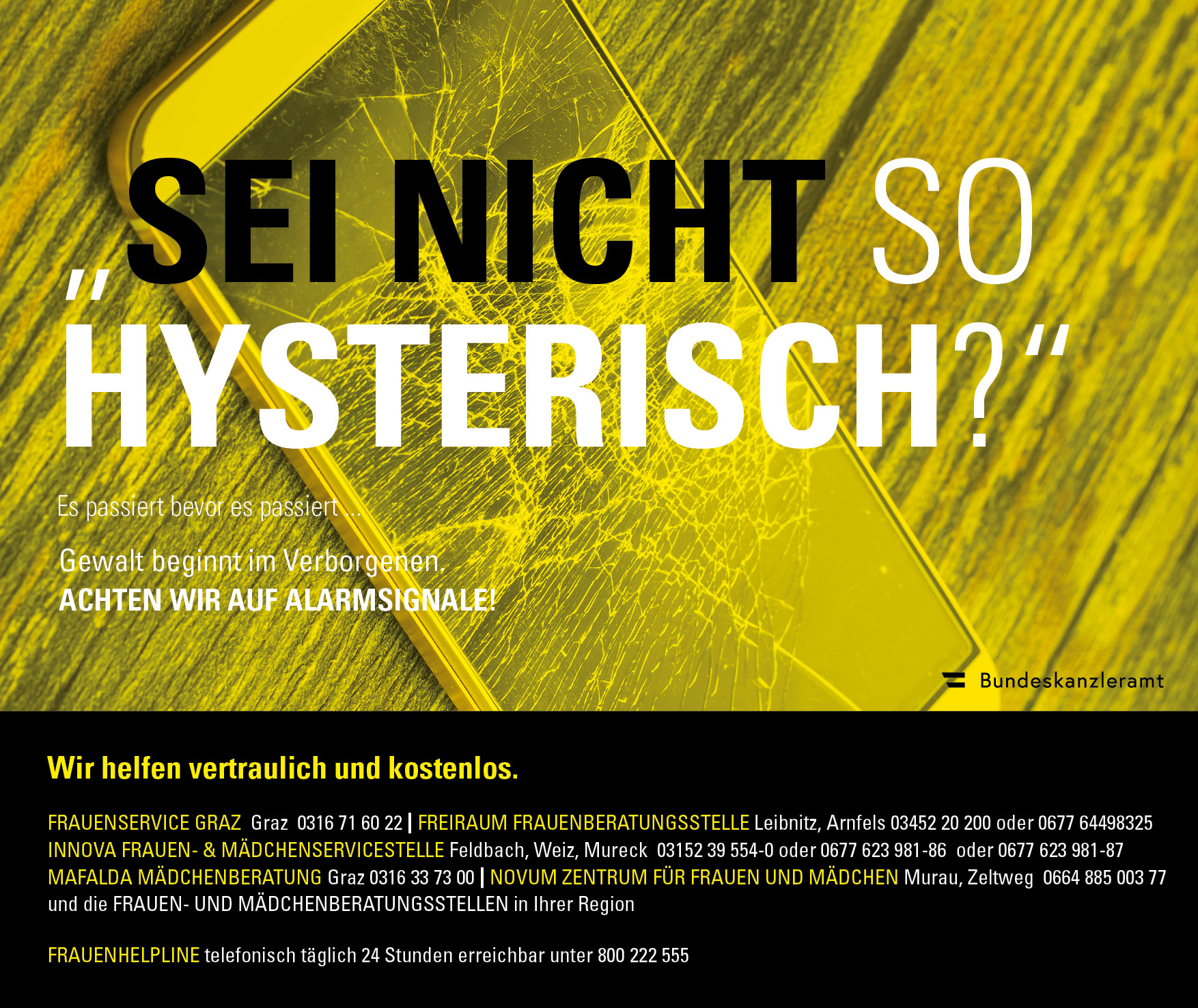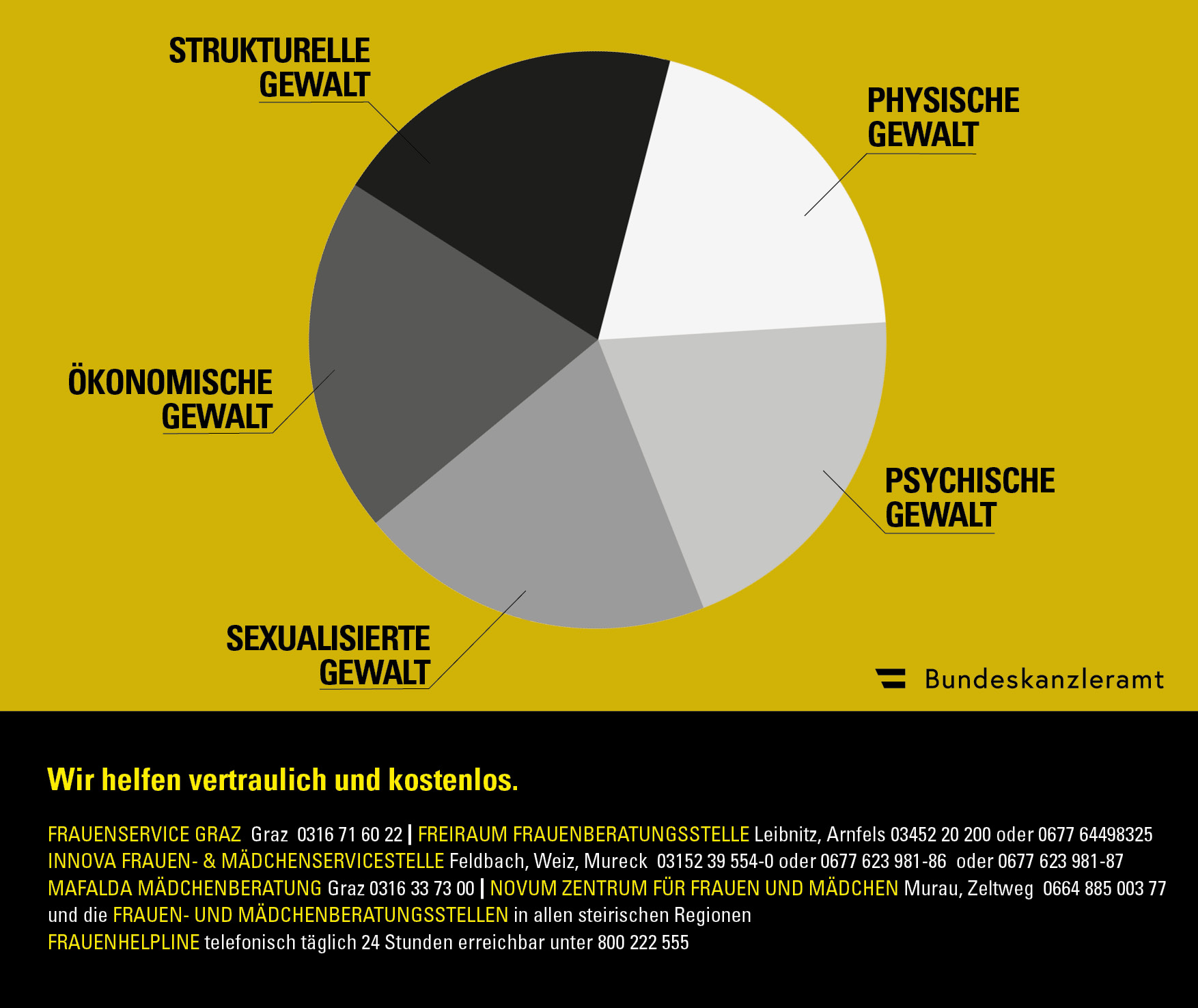 Aufklärung und Unterstützung bieten unter anderem Frauen- und Mädchenberatungsstellen aus der Steiermark: Frauenservice Graz, Innova, mafalda, Freiraum, novum