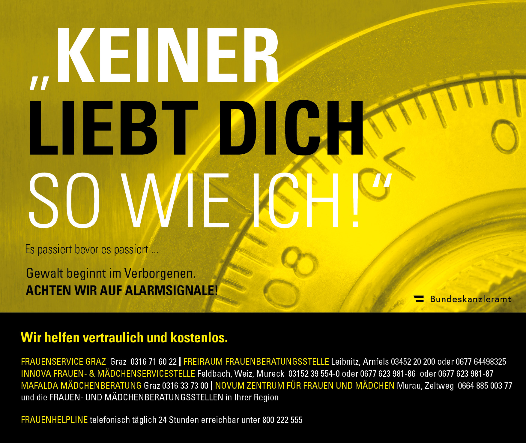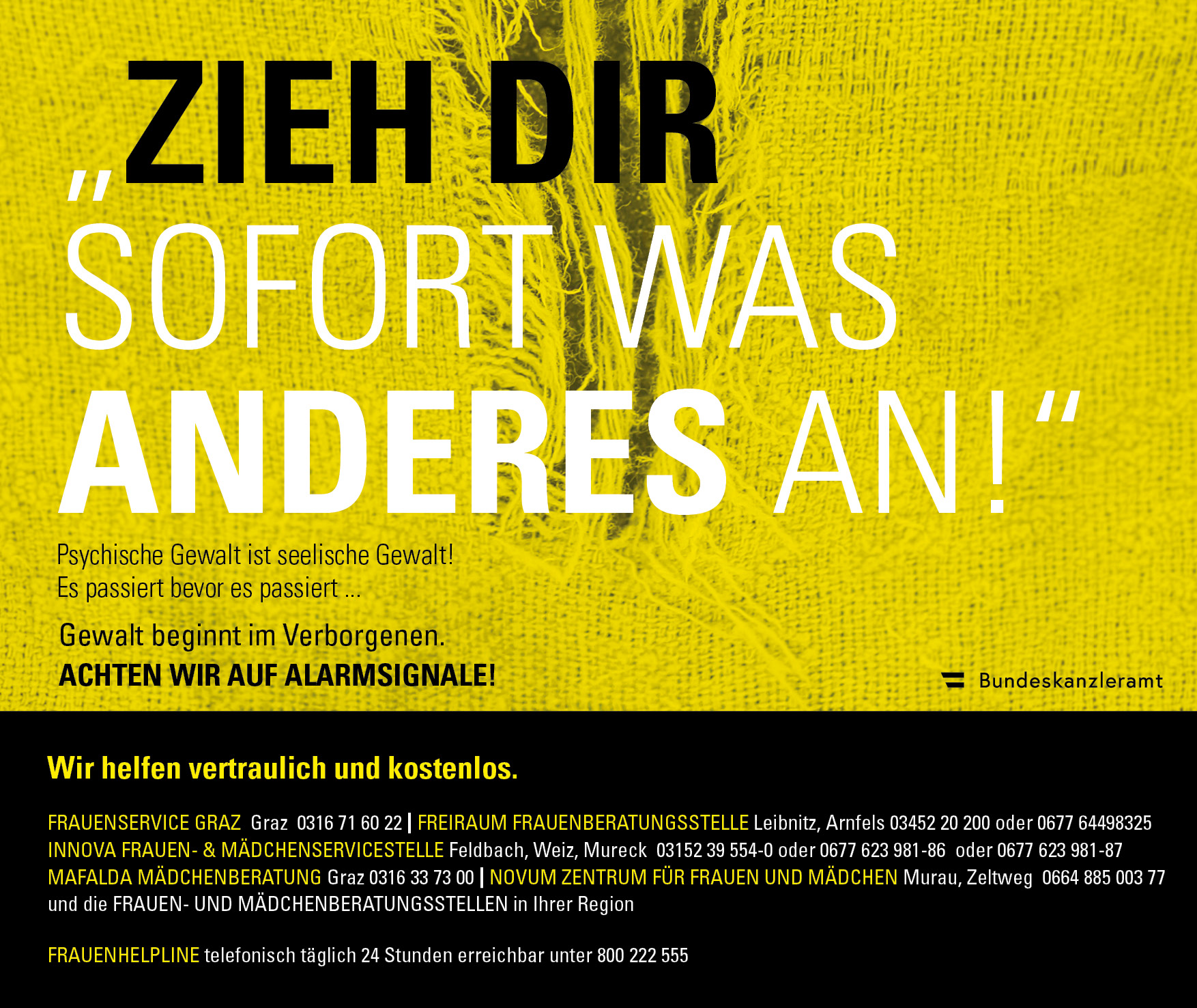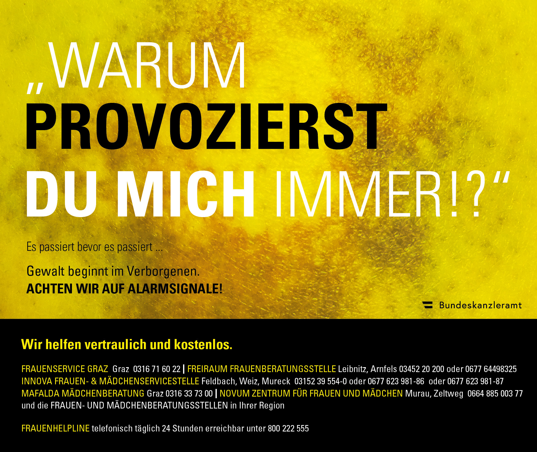 Aufklärung und Unterstützung bieten unter anderem Frauen- und Mädchenberatungsstellen aus der Steiermark: Frauenservice Graz, Innova, mafalda, Freiraum, novum